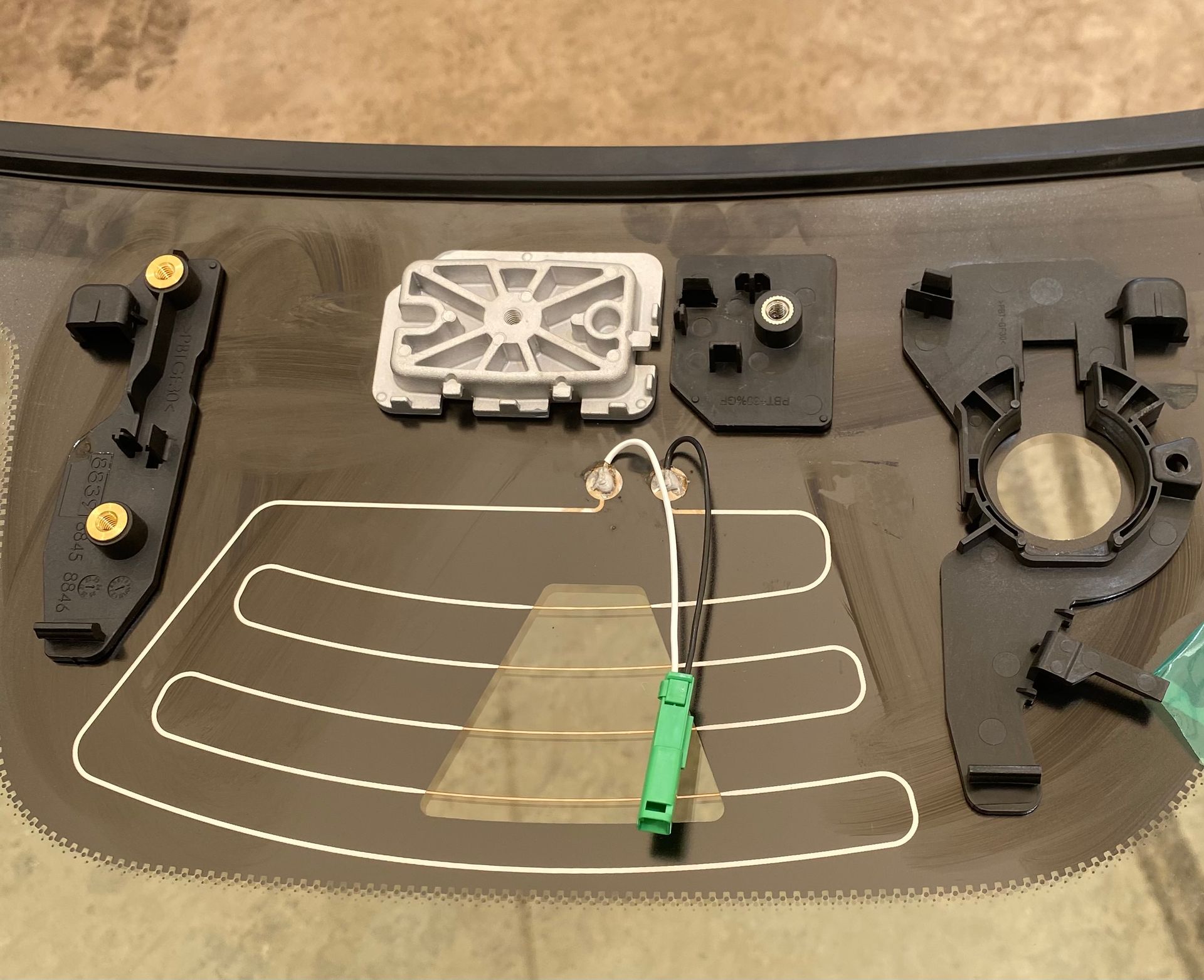 Interior view of a modern windscreen showing ADAS brackets and sensor brackets